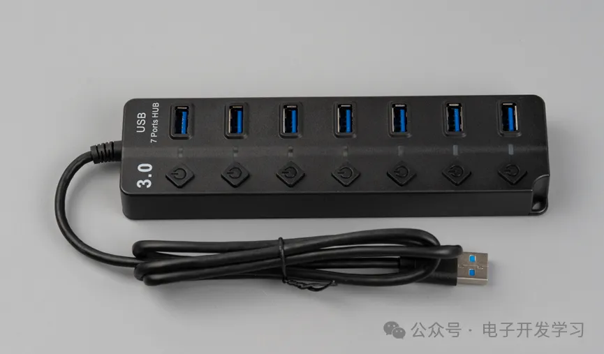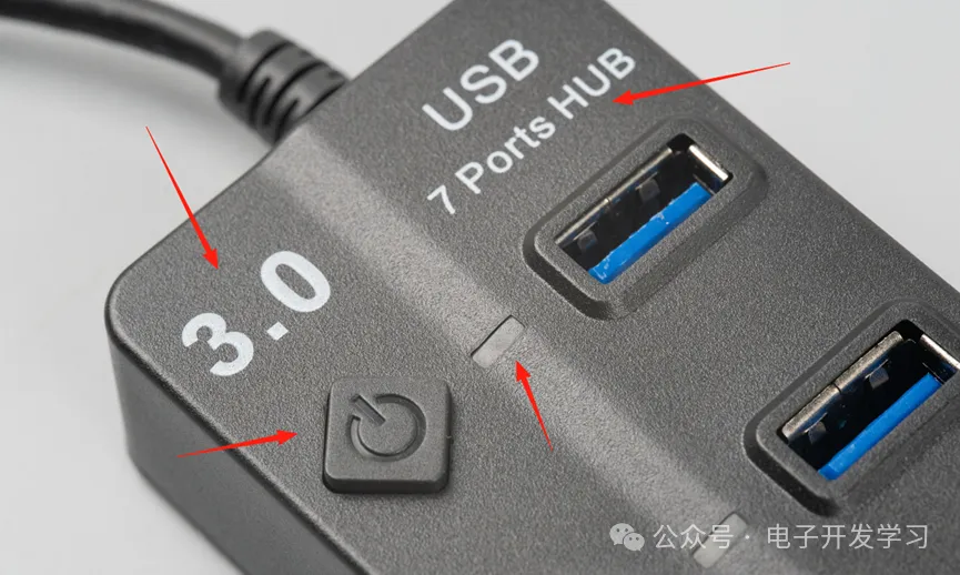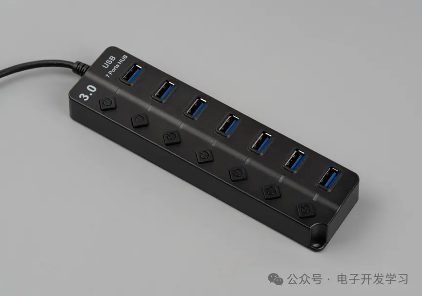 上面写着USB 7 Ports HUB、3.0等字样。每个口旁边都有一个指示灯和一个开关。这么看还挺有质感,可能主要是我照片拍得好!