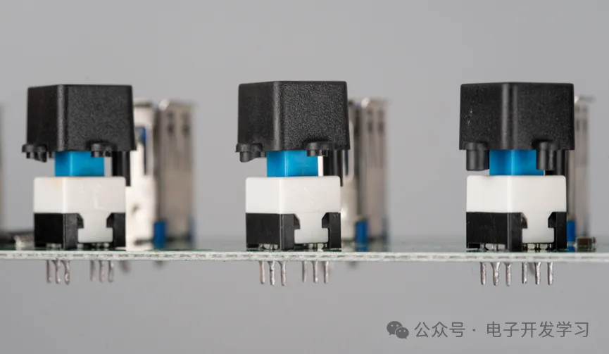 自锁开关。直接通断每个USB下行口的VBUS供电。同时,LED指示灯也是由这个VBUS供电,当切断之后,LED指示灯灭!