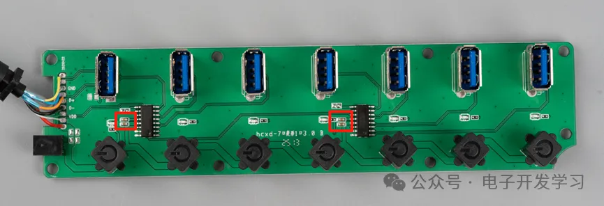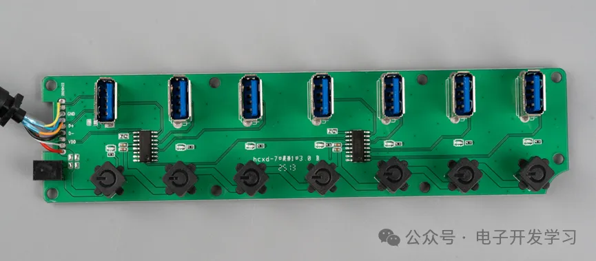 如果做成7口,还要增加1个USB3.0 HUB芯片和3个USB3.0连接器,增加3个限流开关、电容等等,下来成本要增加8块钱左右。