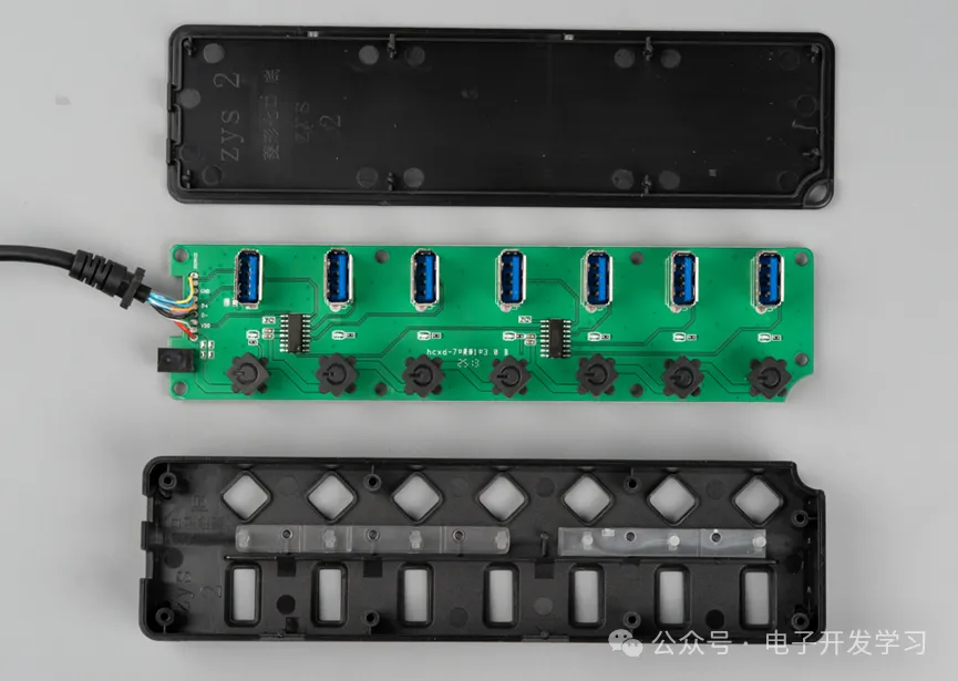 我很惊讶这产品是怎么做到这个价格的。要知道我前几天开源了一个4口USB3.0 HUB(开源链接:太香了!花15元DIY一个USB3.0 hub,全部开源!),在白嫖四层PCB和不计算3D打印外壳的价格的前提下,成本都已经达到了15元。