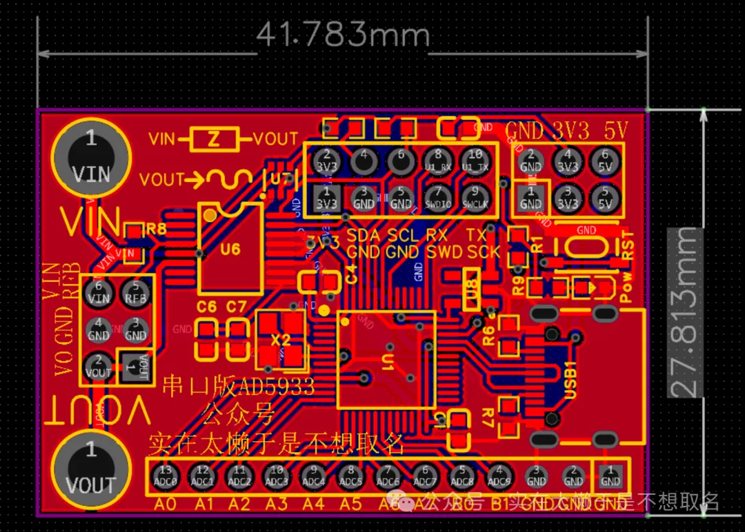 整个模块控制在了41*28,大概3:2的比例(图中的AD5933模型不知道为什么反了)。