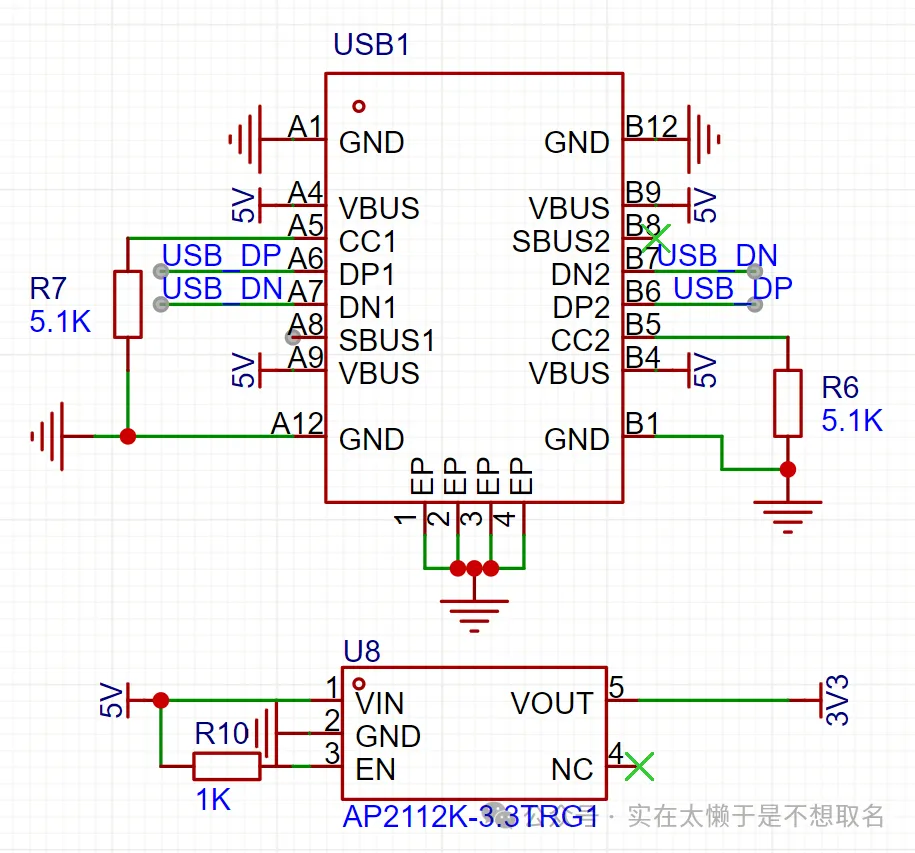 16Pin的TypeC接头这个是为了方便和上位机通讯,降压模块采用AP2112K-3.3,提供最高600mA的工作电流,而且它的封装非常非常的小。