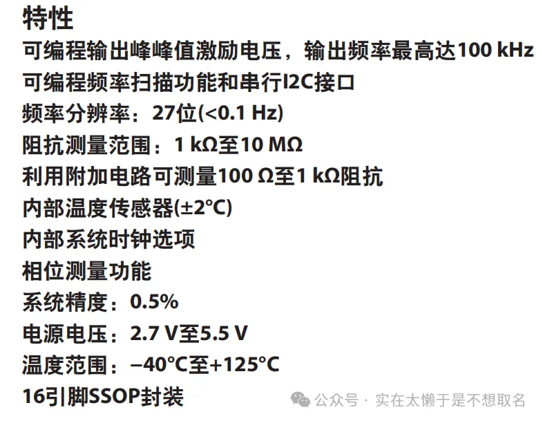 AD5933作为一款专用的阻抗测量芯片,其性能可以说是非常非常的强大,具有100KHZ的DDS信号源输出,内置离散傅里叶变化DFT计算单元。