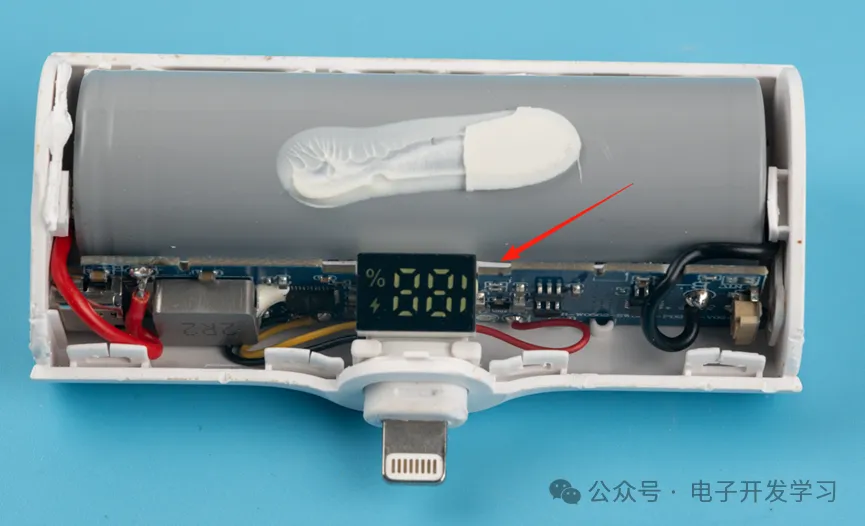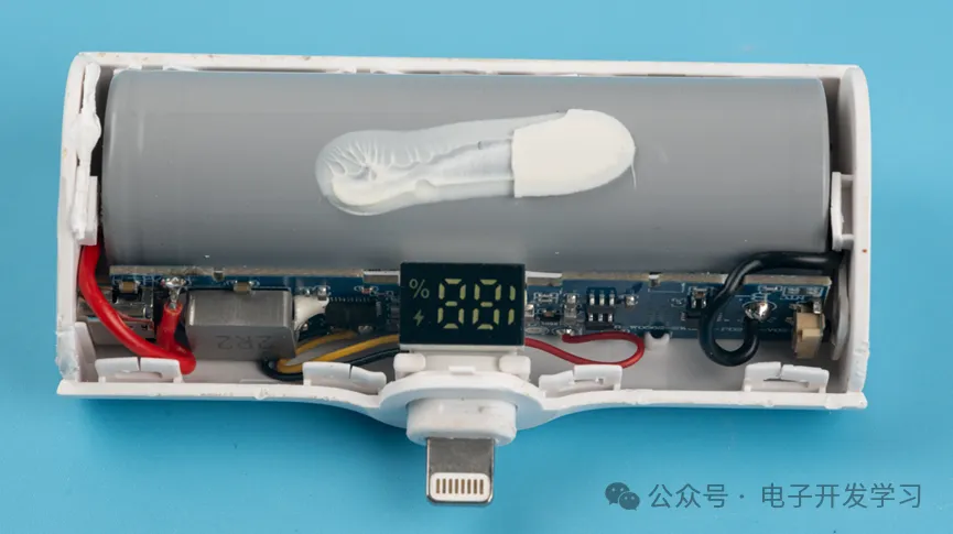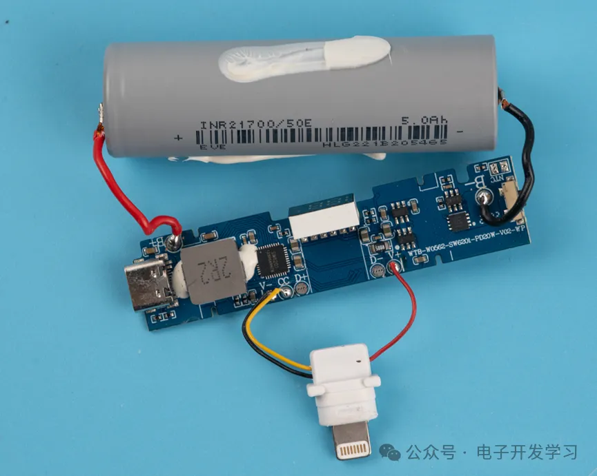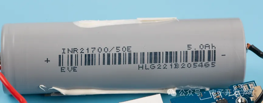 这个充电宝用了一颗亿纬锂能的21700圆柱状锂电池,容量5Ah。
