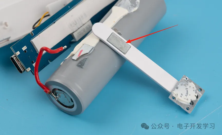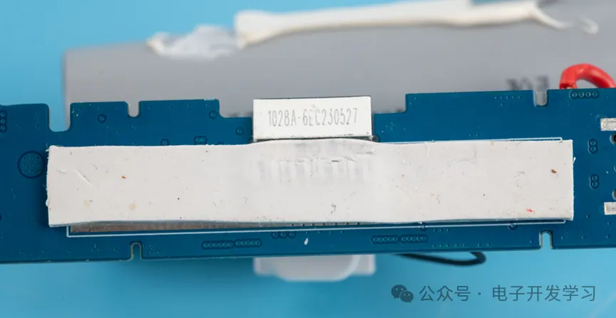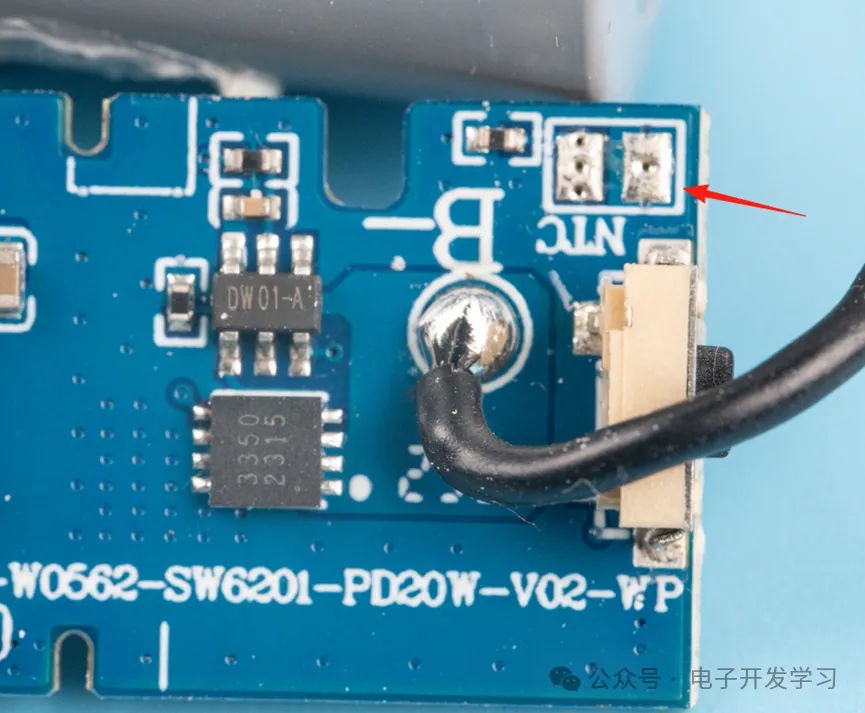 按最初拆解开这个图看,通过散热硅脂片连接电芯和电路板背面裸铜,理论上做到这一步,只需要在板子上放一个NTC然后连接到芯片的14脚就可以实时检测电池、电路板温度。但是实际上我却没找到这个NTC。