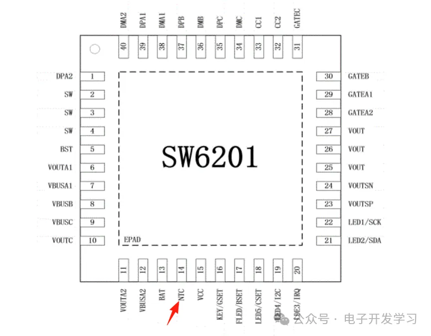 SW6201的pin14为NTC引脚。