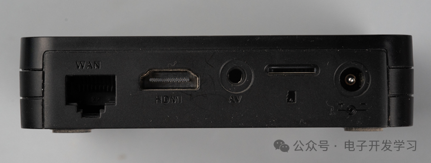 另一个侧面是WAN口、HDMI视频信号输出口、音频接口、SD卡插槽、DC电源供电口。