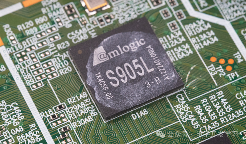 去掉SoC上的散热片,可以看到SoC用的是晶晨的S905L。大概是很多机顶盒用的都是这个SoC,所以可以在网上搜到很多S905L的刷机包。