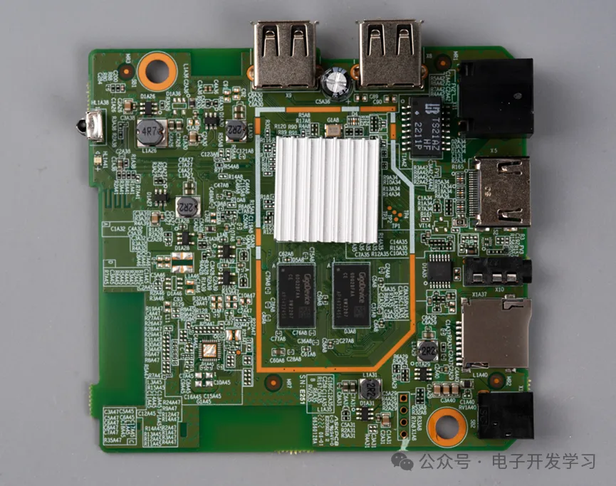 虽然这款中兴机顶盒的硬件配置较为基础,但仔细观察仍能发现一些值得玩味的细节。例如,板子上未贴装的器件位置暗示了其可能的“高配版本”——背面的空焊盘支持额外两颗DDR4内存(理论可扩展至2GB),而右上角的无线模组焊盘则表明厂商可能计划推出支持Wi-Fi的型号,但最终因成本或需求原因被精简。这种“留白”设计在消费电子中很常见,既能简化生产线,又能为后续升级预留空间。