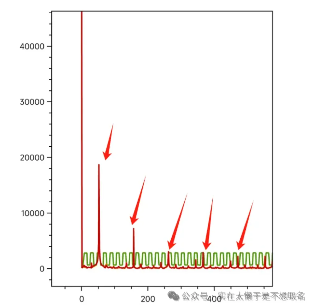 如图为方波的基波和谐波幅度图,可以示波器测得,也可以通过DFT计算。