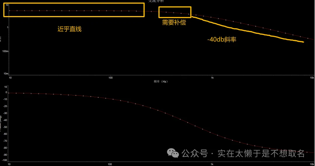 学过伯德图的朋友都知道,前半段是直线,后半段是近似斜率-40db的斜线,所以基础好的同学也可以获得近似的幅度和频率的数学表达式。