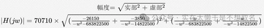 但是本题我要通过结果倒推频率w显然是很难计算的,所以我的建议是直接将幅频曲线的幅值打印成表,到时候直接查表