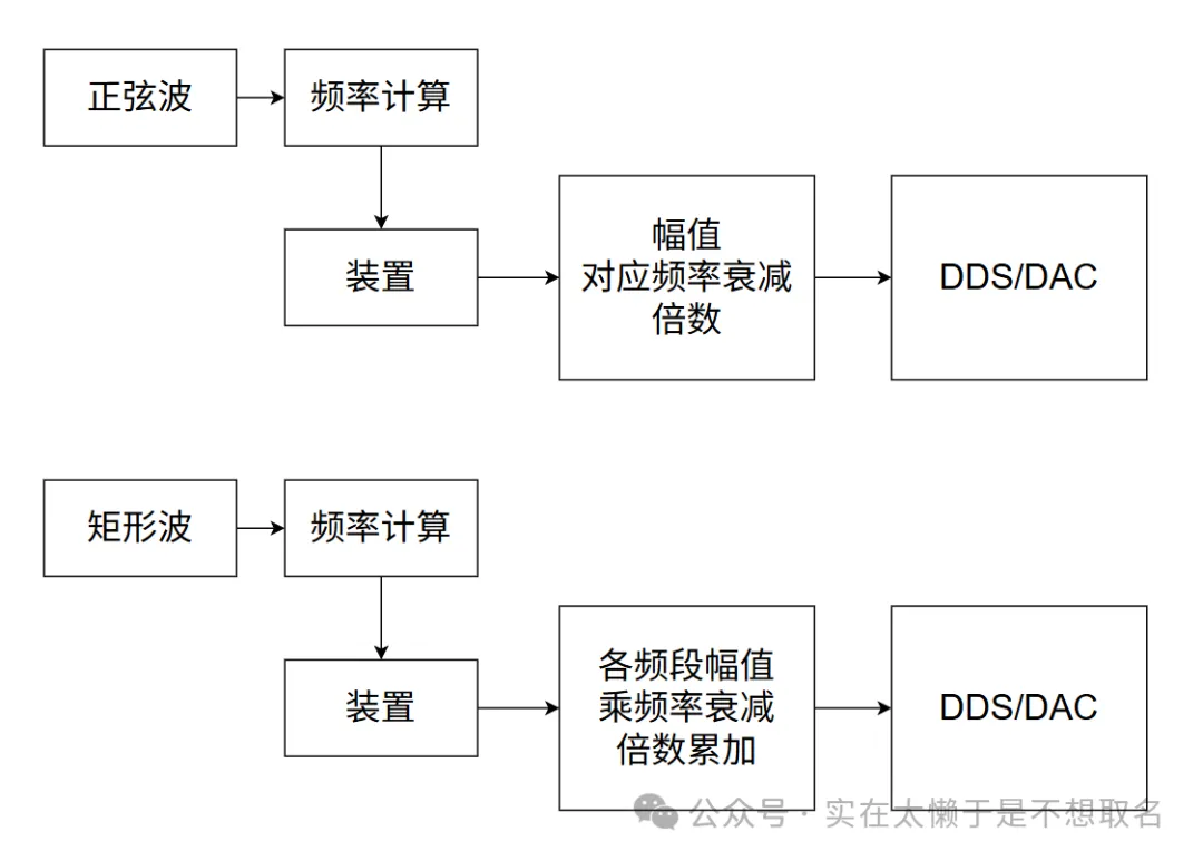对于矩形波来说,我们只要测出他的频率(基波频率),我们可以根据各个频点的谐波幅度和阻抗网络对应该频点的衰减倍数相叠加,获得最终的输出曲线。