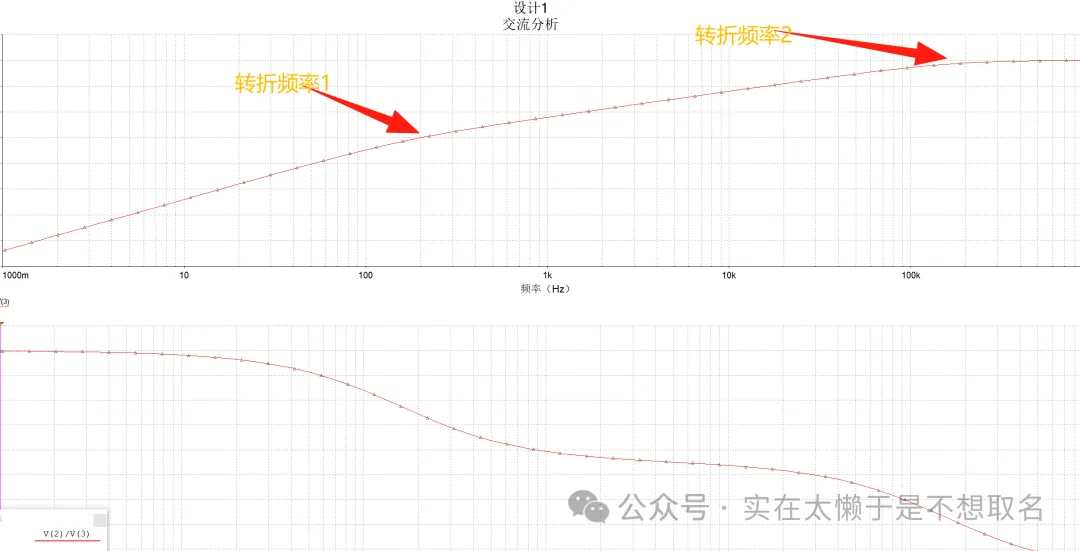 这是因为原本的分母可以被因式分解为两个因子,τ1和τ2分别决定了原本曲线的转折频率: