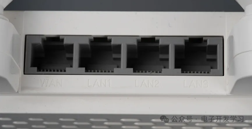 一般不同的口会用不同的颜色做区分,这个路由器上LAN口和WAN口全是灰色的。