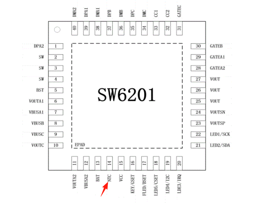 使用了一颗智融的SW6201,这是一颗支持PD的多协议双向快充移动电源IC。电流最大5A,支持JEITA规范,输出功率最高18W,效率最高95%。输出的快充协议支持PPS/PD3.0/PD2.0/QC4+/QC4/QC3.0/QC2.0/AFC/FCP/SFCP等等。输入的快充协议支持PD3.0/PD2.0/AFC/FCP等等。还内置了电量计和188数码管显示驱动以及3-5个LED指示灯驱动。根据以上参数来看,这是专门为充电宝方案设计的IC。