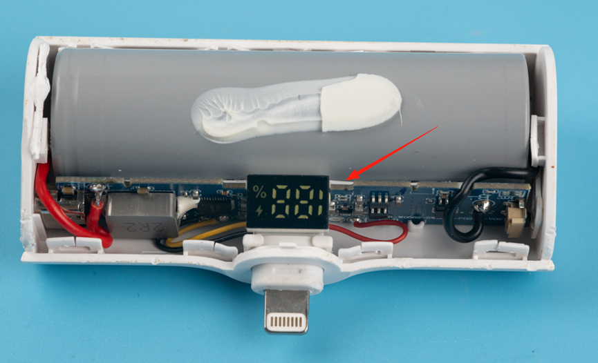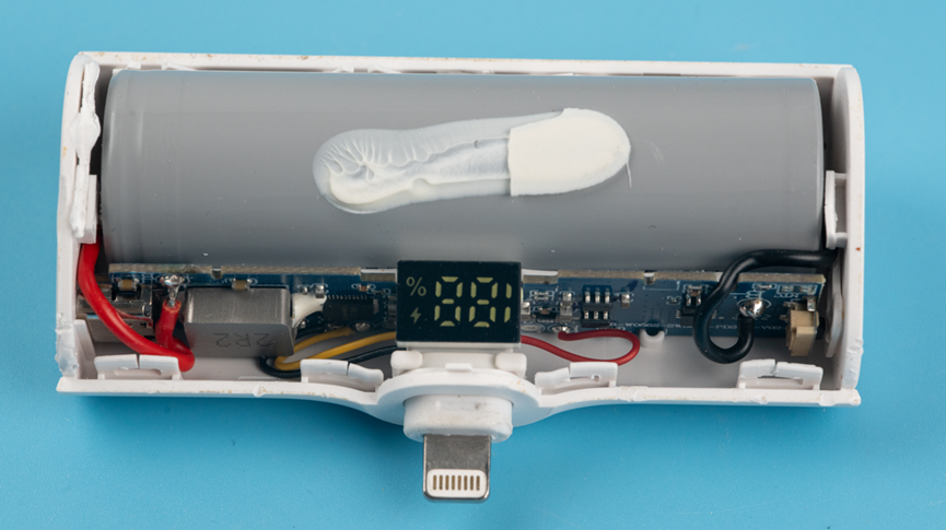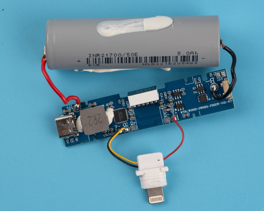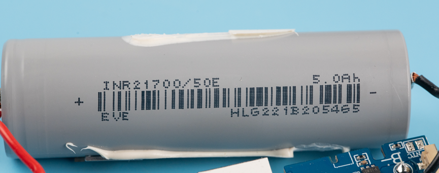 这个充电宝用了一颗亿纬锂能的21700mAh圆柱状锂电池。