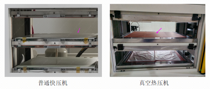 答:真空压机是多了气囊,压合时先抽掉板内空气,再往气囊内充满带压力的气体,来实现压合。普通快压机是直接通过平整的钢板来实现压合。
