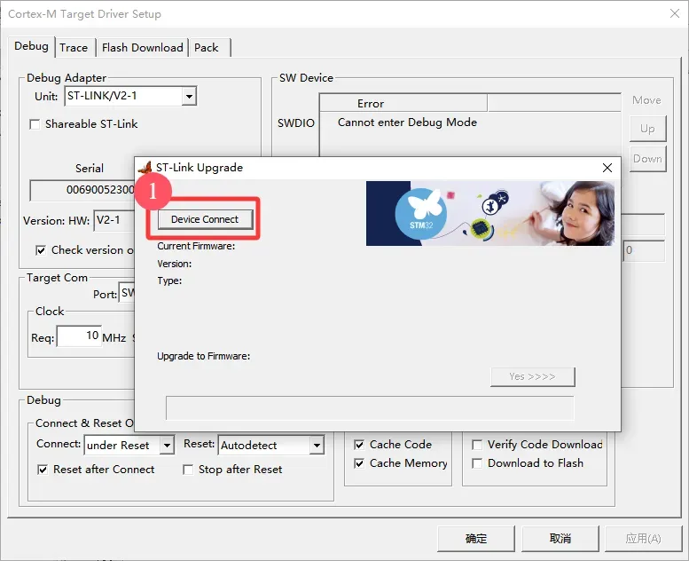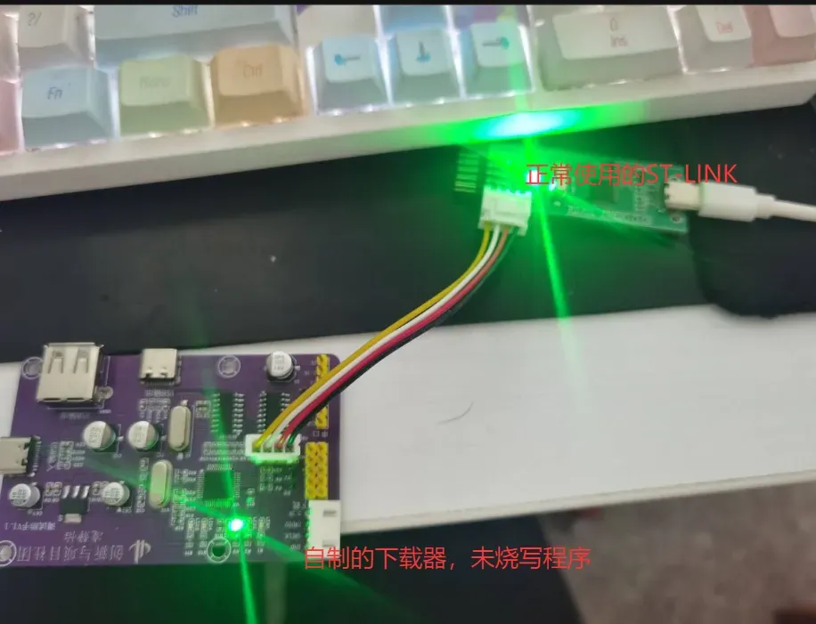 使用一个正常的ST-Link连接需要下载程序的ST-link。