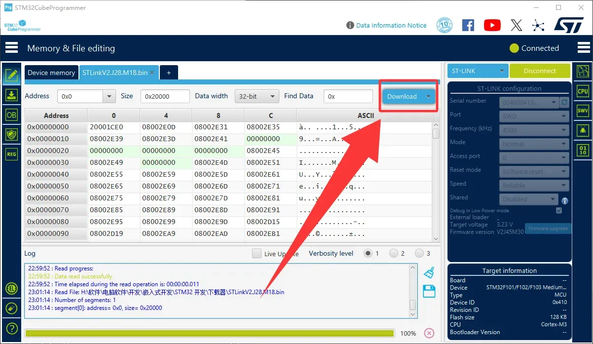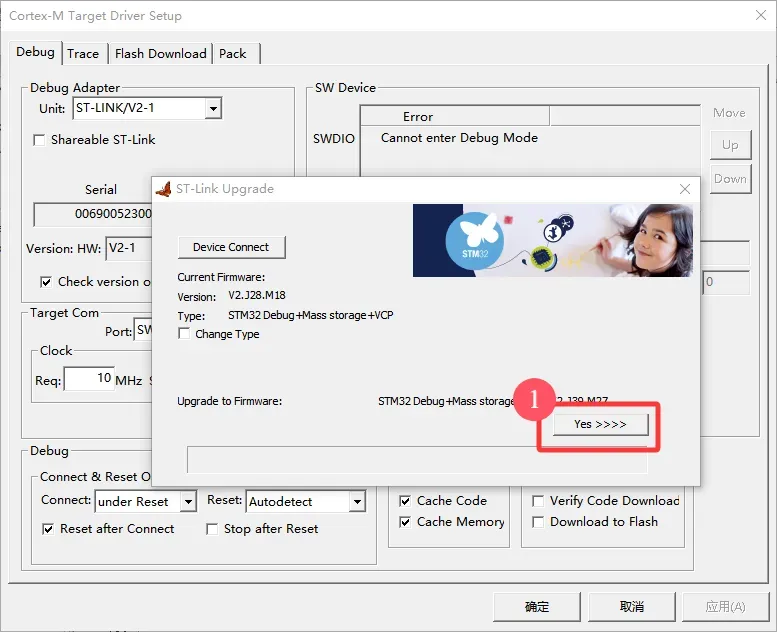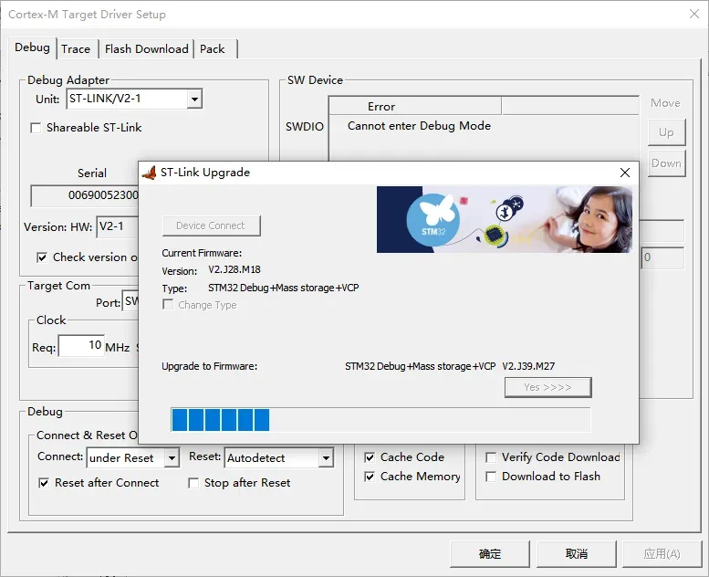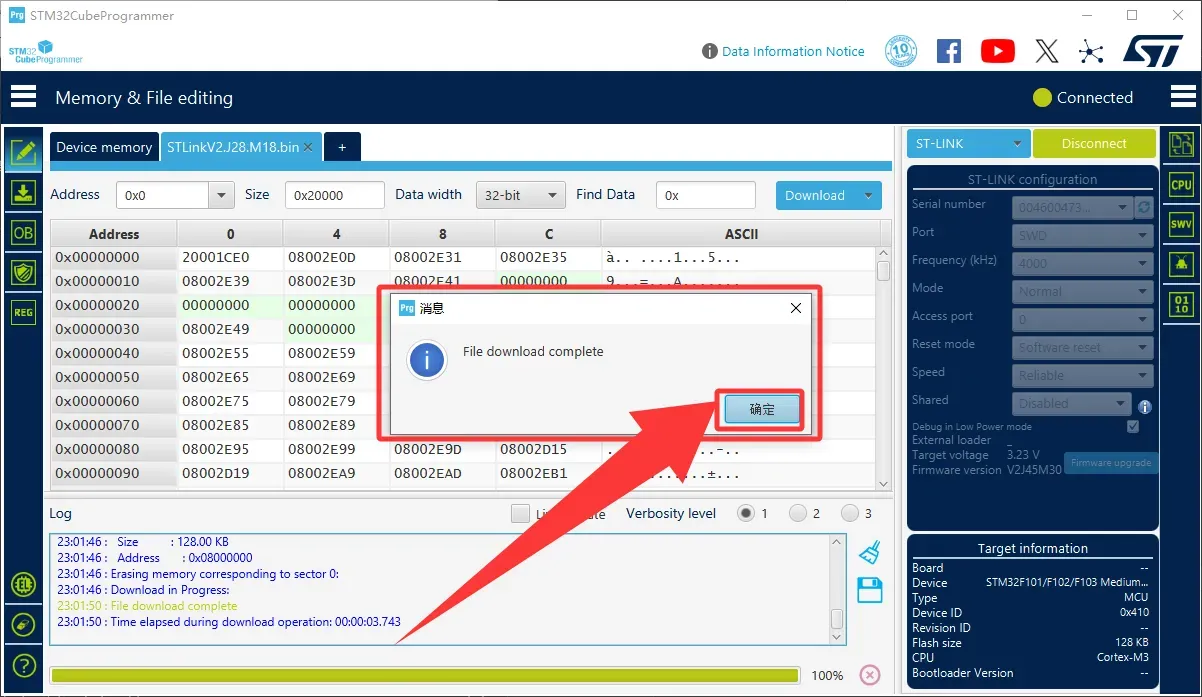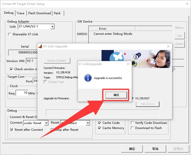 提示更新成功,即可正常使用新烧写固件的ST-Link了