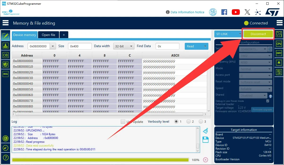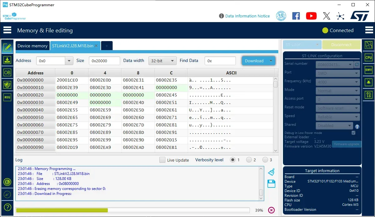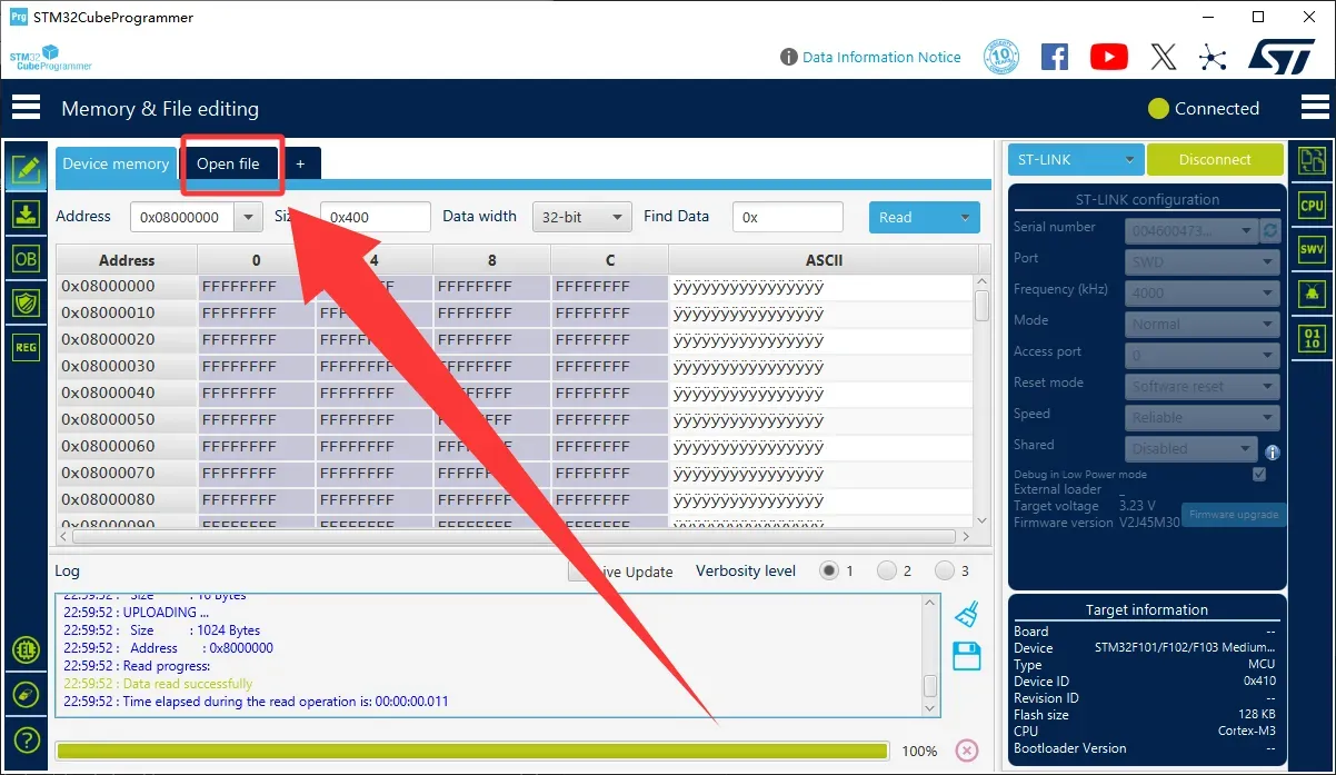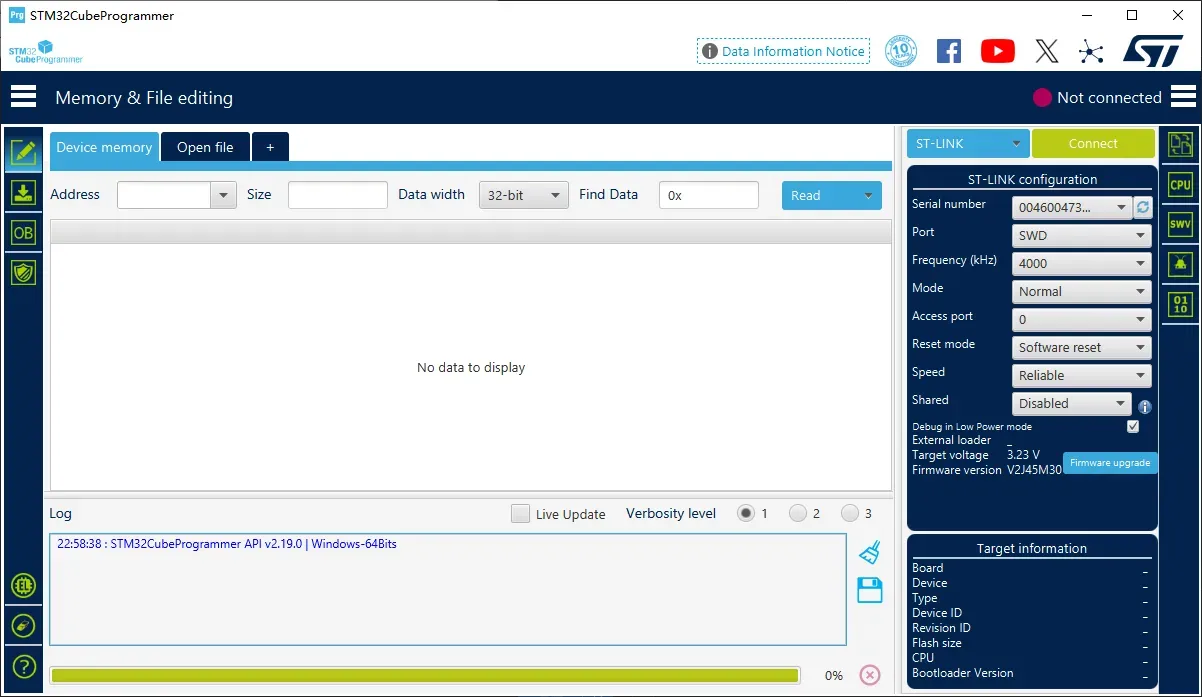连接好后,电脑上打开工具 STM32 CubeProgrammer,