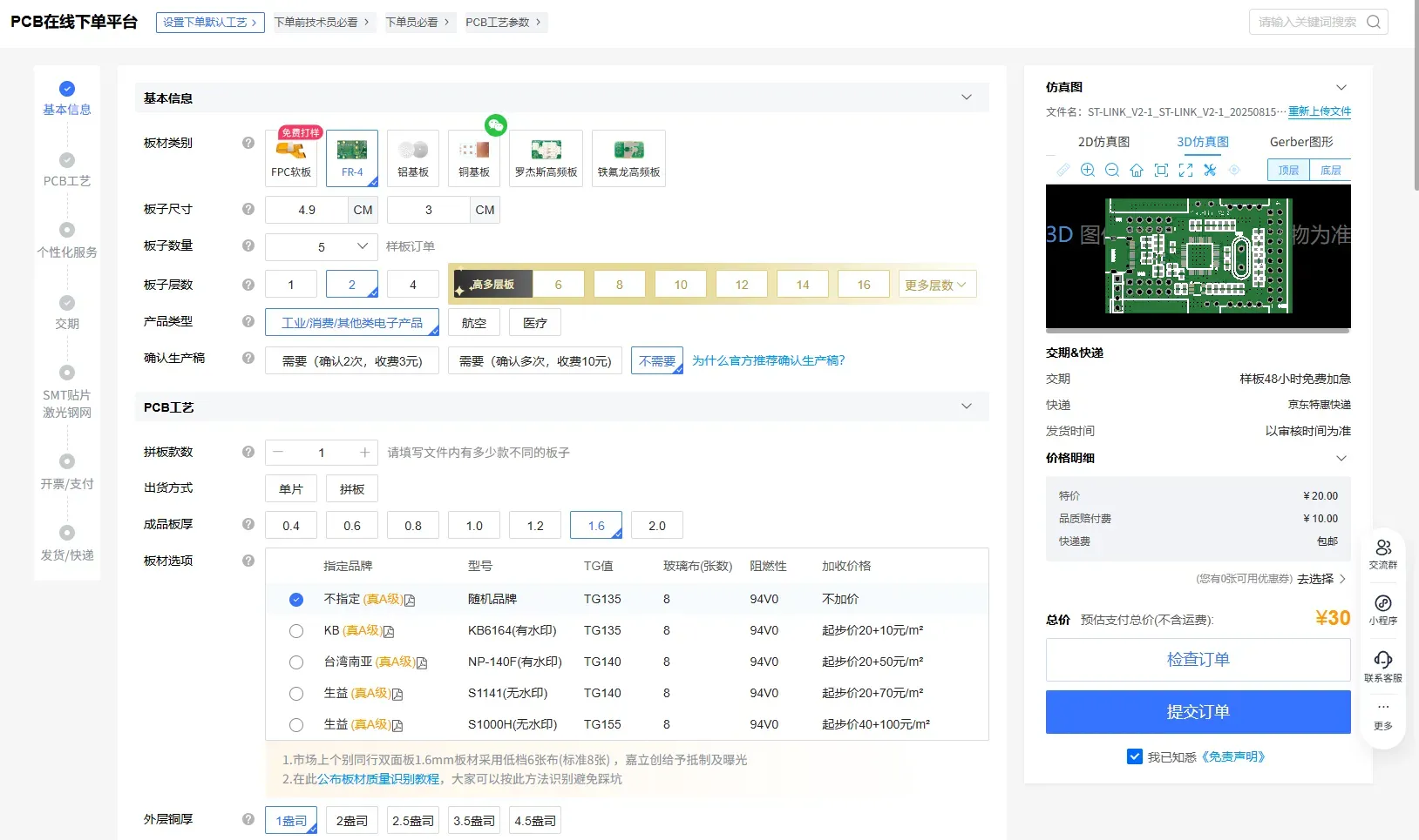 并且嘉立创也可以免费3D打印服务了,非常人性