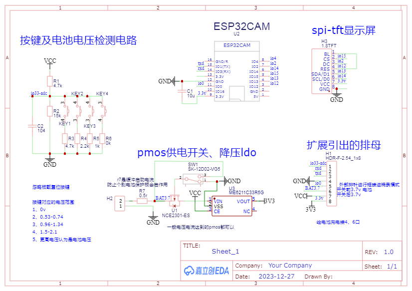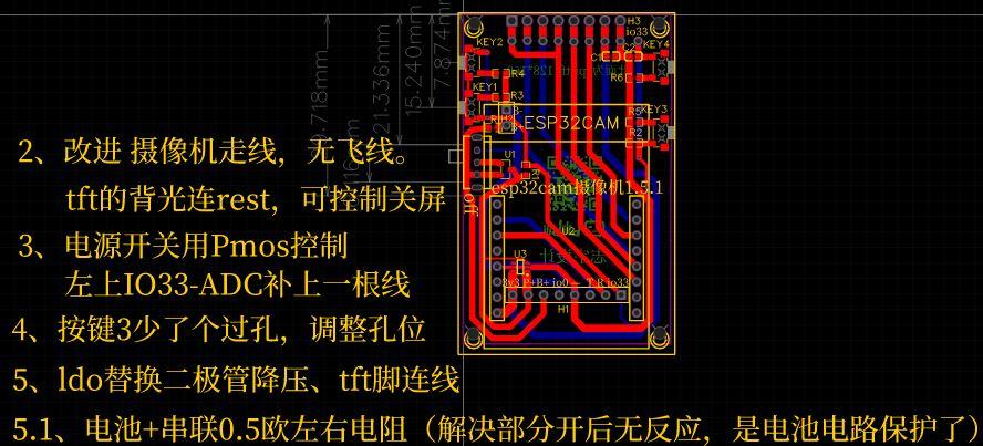 - tft屏与sd卡引脚重合(引脚实在不够用),导致拍照写入sd卡后,得重启才能正常使用,否则tft异常。