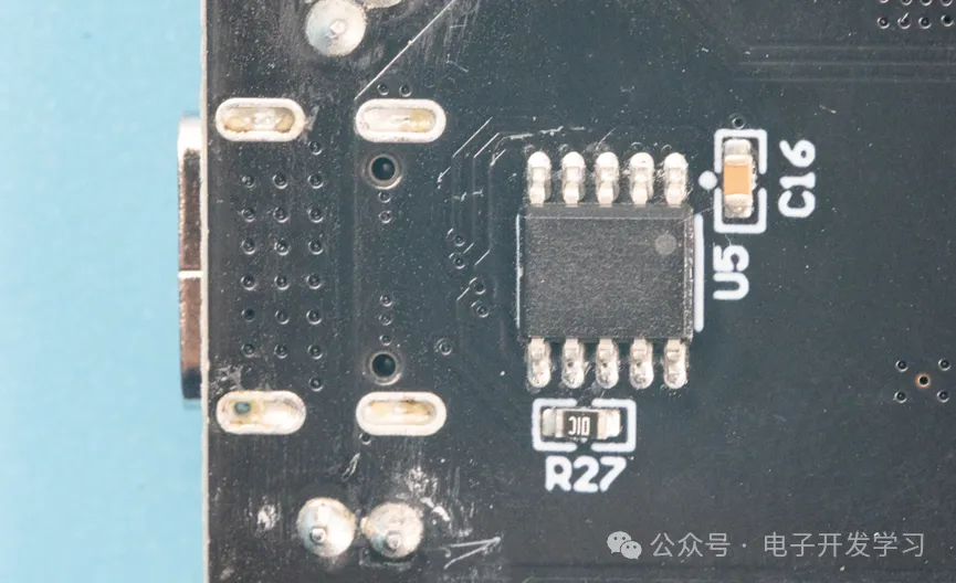电路板正面视图。黑阻白丝PCB看着做工还可以。