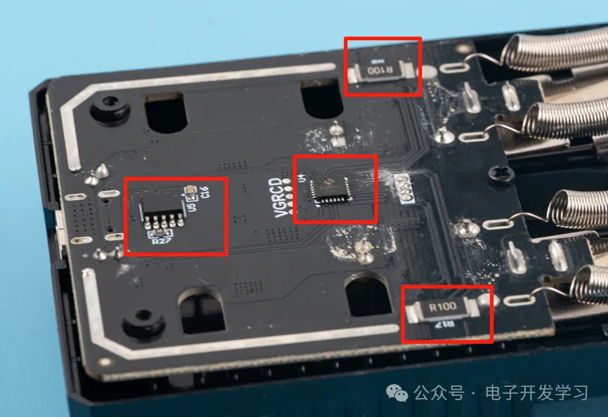 拆开之后,内部结构是这样的。每一个充电位上有两根拉簧。