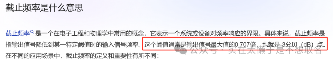 那么这个式子和我们文章开头的式子有什么关系呢?这里就需要提一下截止频率的概念。