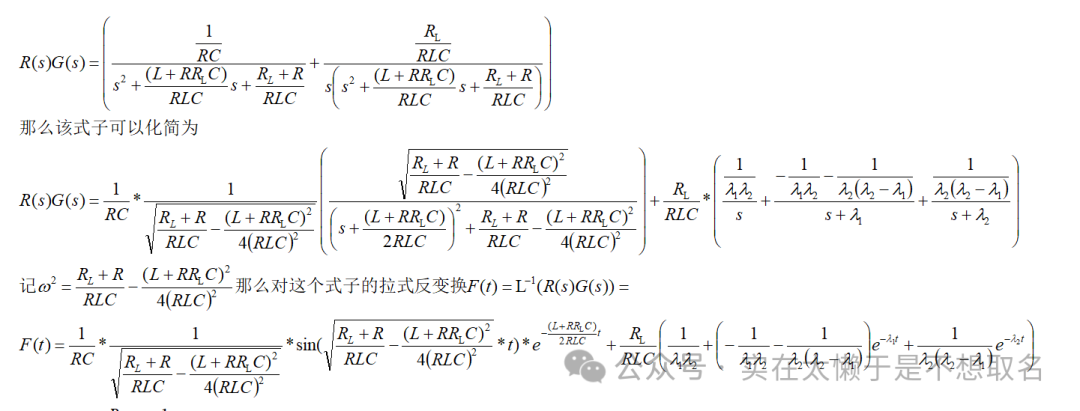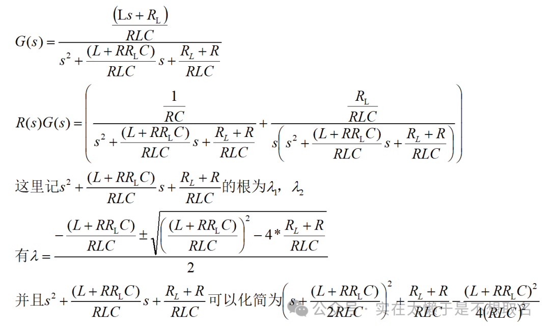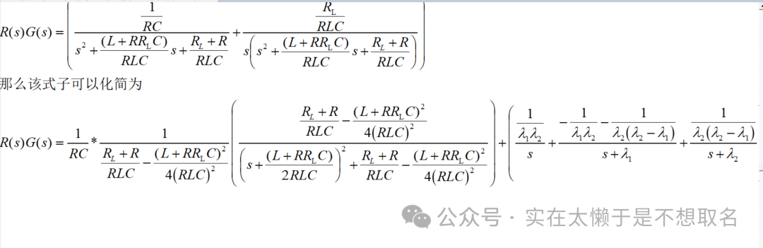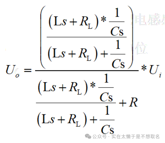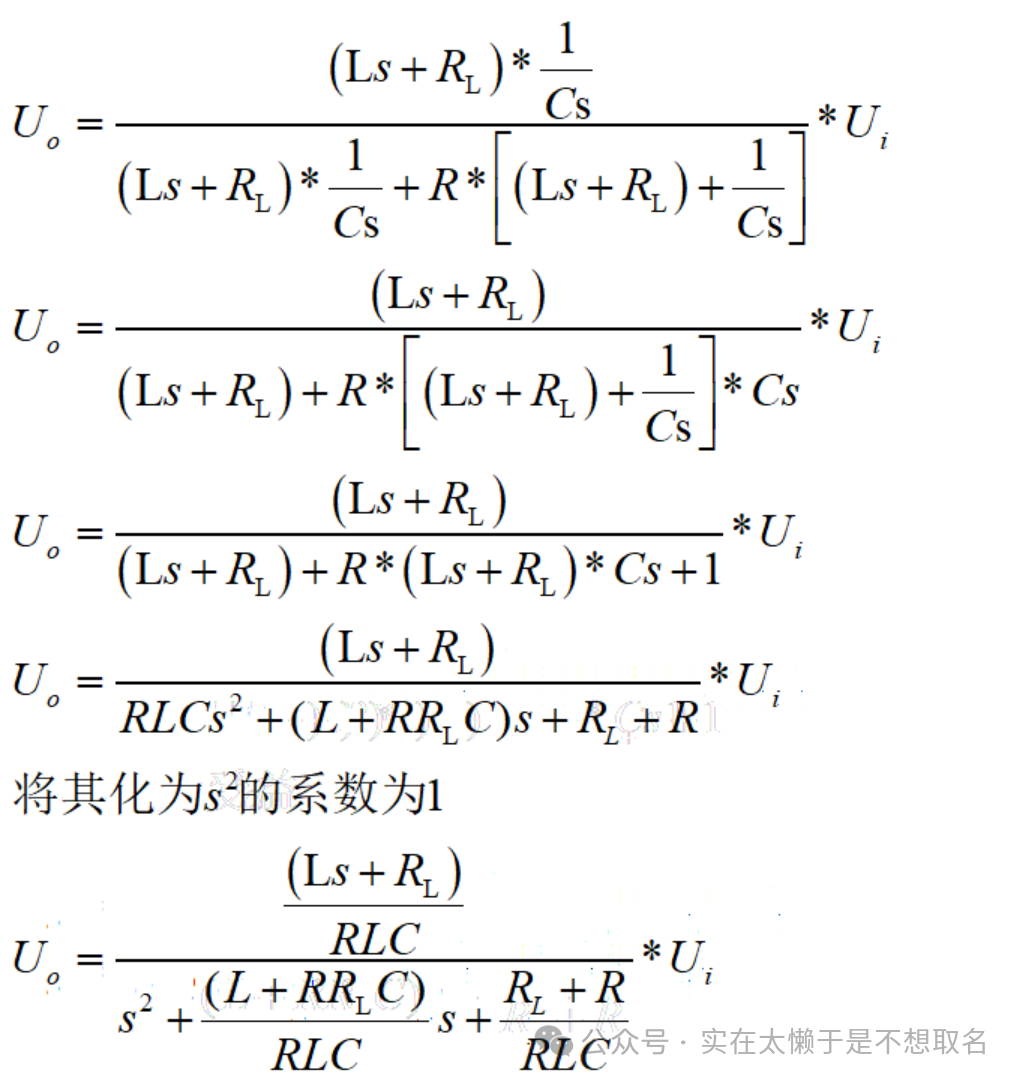 那么整个电路的传递函数就是这样子如图所示。我们对这个式子进行化简。