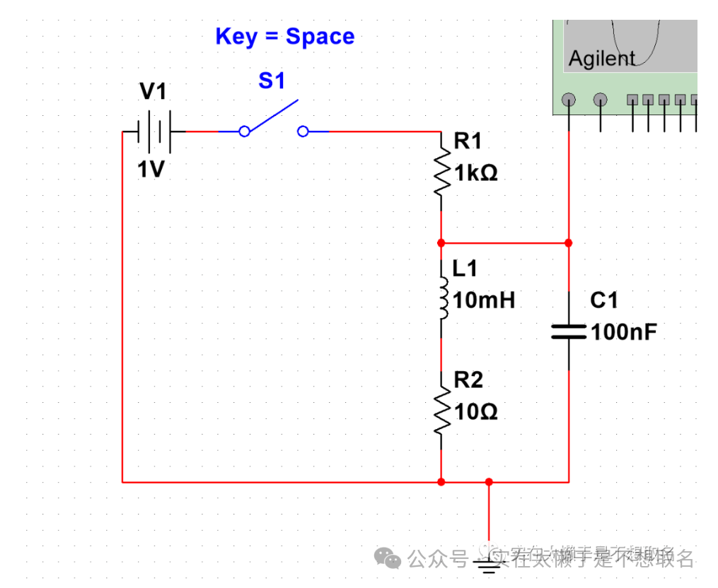 在该电路中,由一个限流电阻R1,固定电容C1以及待测电阻L1,其中R2为电感的直流电阻远小于R1。