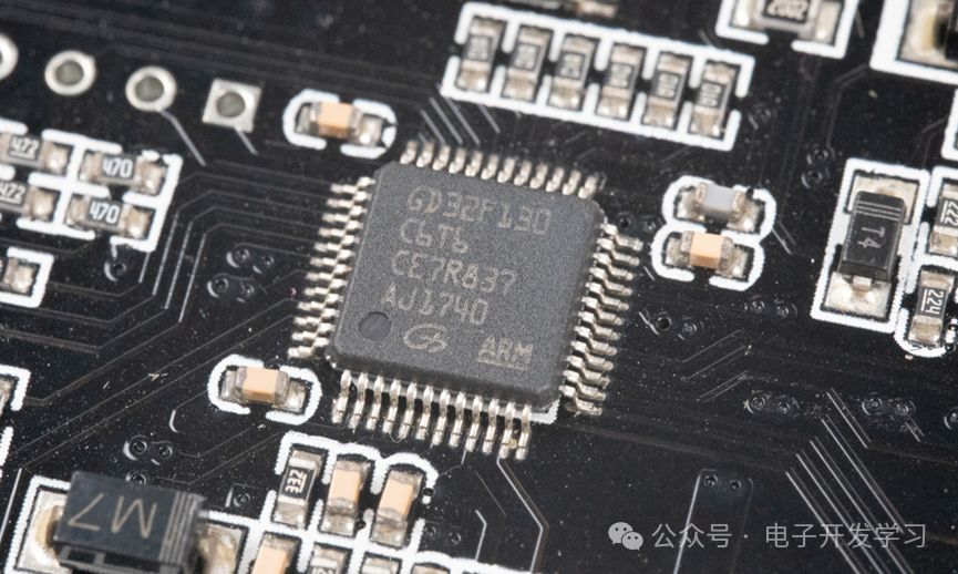 主控芯片是兆易创新的GD32F130CBT6,封装LQFP-48,主频是108MHz。
