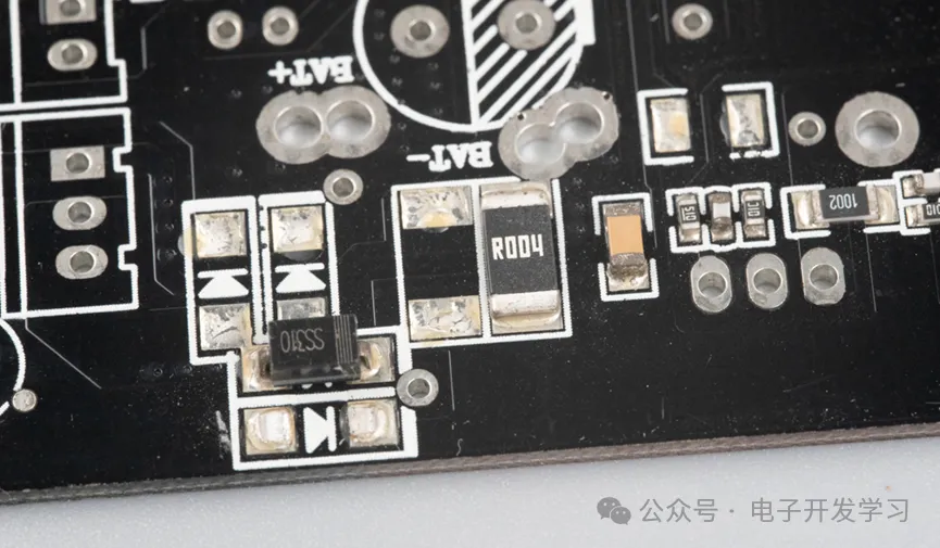 电池母线孔旁边有一个4毫欧的采样电阻。