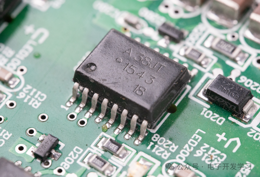 每个桥臂驱动上都有一个来自Avago的ACPL-38JT-500E,这是一个隔离电压5KV的逻辑输出光耦。