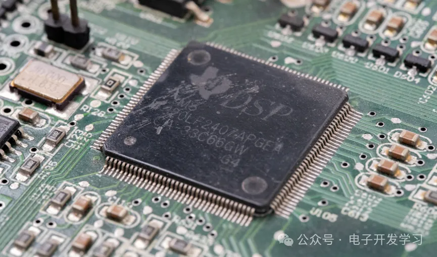 主控采用了Ti的16bit定点DSP芯片,型号是TMS320LF2407,这也是我拆解了很多东西首次拆解出DSP。但是这个DSP是比较古老的型号,最早发布时间是1999年,距离现在已经26年了,采用的是0.25um的CMOS工艺,主频“高达”40MHz。