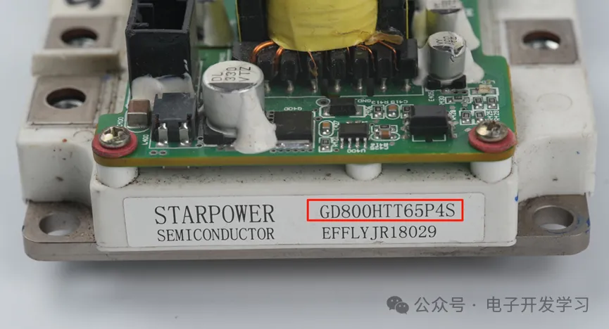 这是这个IGBT的型号:GD800HTT65P4S,800代表电流800A,65代表电压650V。
