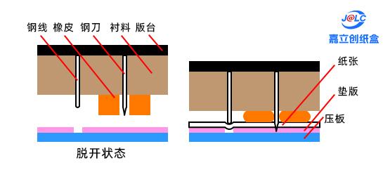 压痕是配合模切的重要辅助工艺。通过压力的作用在板料上压出弯折线,或利用滚线轮在板料上滚出线痕,以便板料能按预定位置进行弯折成型。
