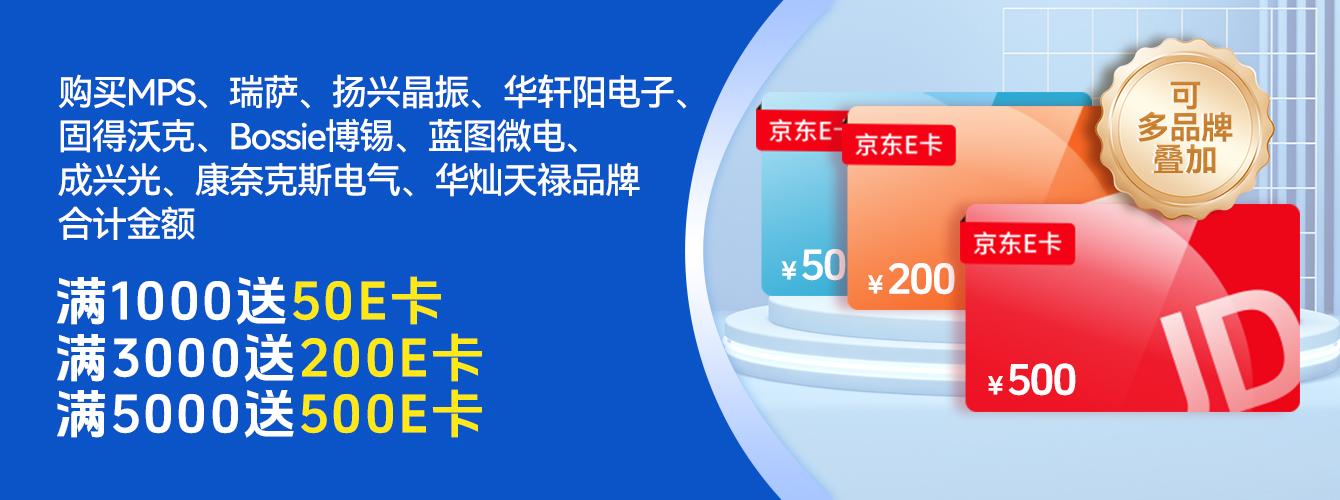 另外,当天购买MPS、瑞萨、扬兴晶振、华轩阳电子、固得沃克、博锡、蓝图微电、成兴光、康奈克斯电气、华灿天禄品牌商品累计单笔订单满1000元,还可额外赠送50元京东E卡,可多品牌叠加,最高直送500元!以上福利全都可以叠加,即超级会员日当天最高可得1300元京东E卡!