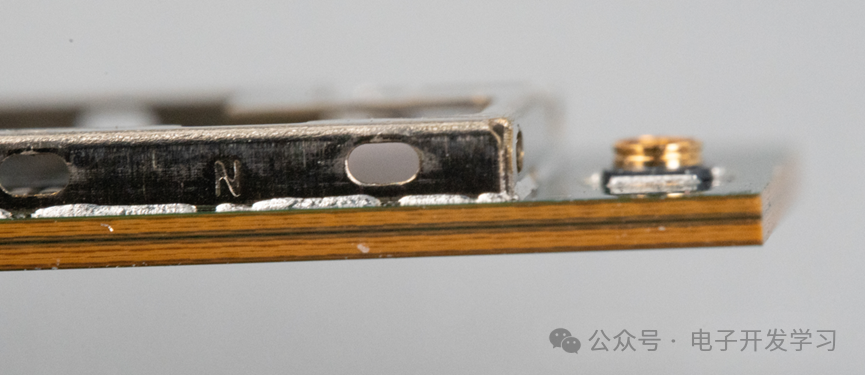 这个板子从侧面看也不是FR-4的材质,应该是高频电路板。