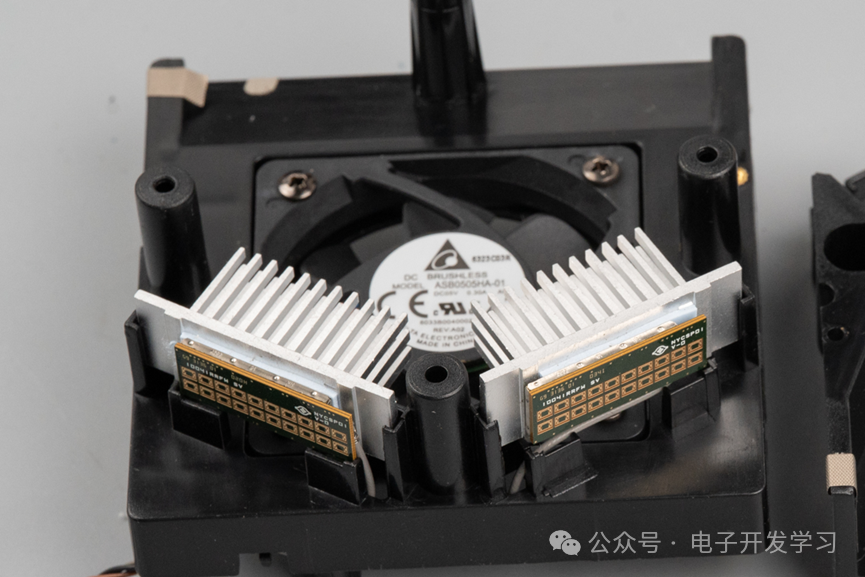 今天来仔细看看这两个东西。发现从主板引过来的两个同轴线,连接到了这两个散热器下面的板子上。