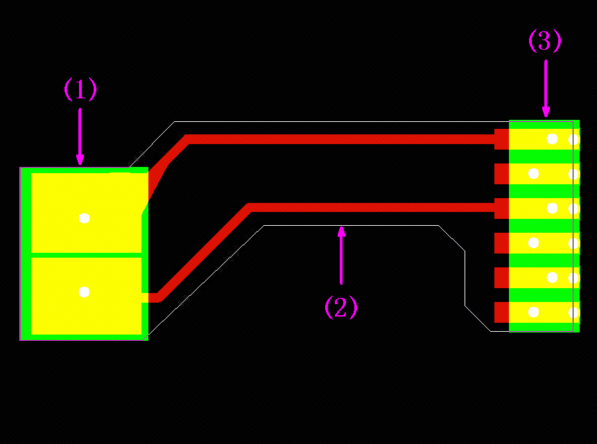 区域(3)为焊接手指区域,双面都没有阻焊膜,需要减掉双面阻焊膜的厚度,理论厚度为110-27.5-27.5=55um。
