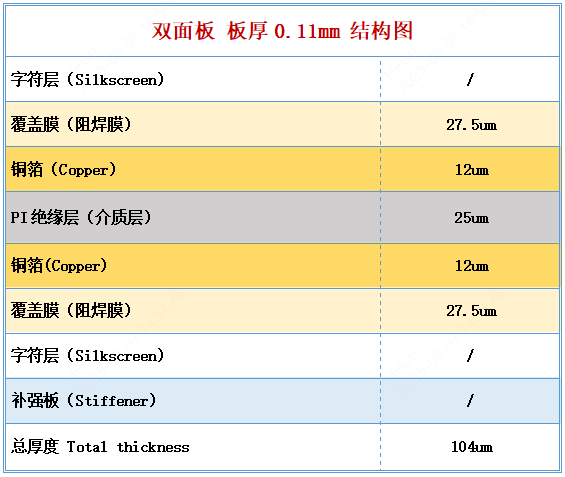以上面客户反馈板厚为0.11mm的双面板为例,其结构图如下所示: