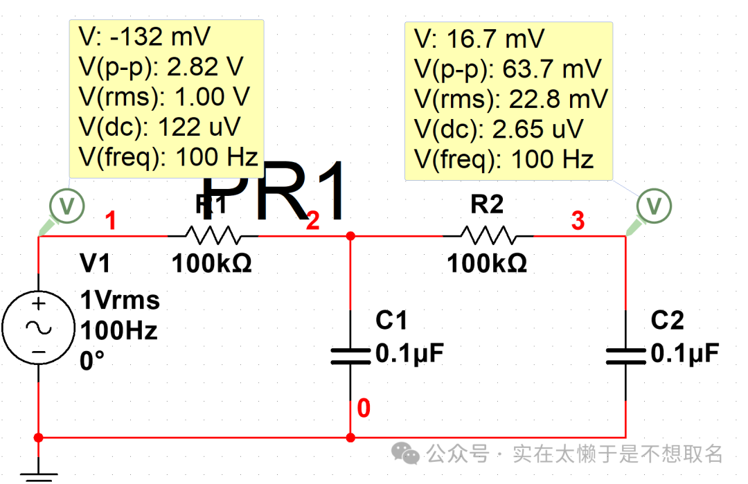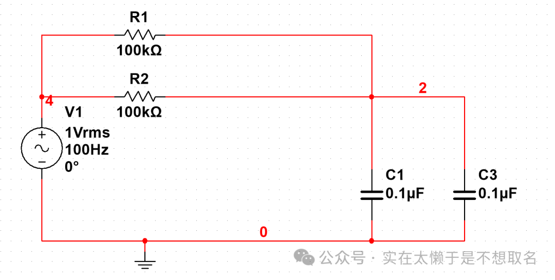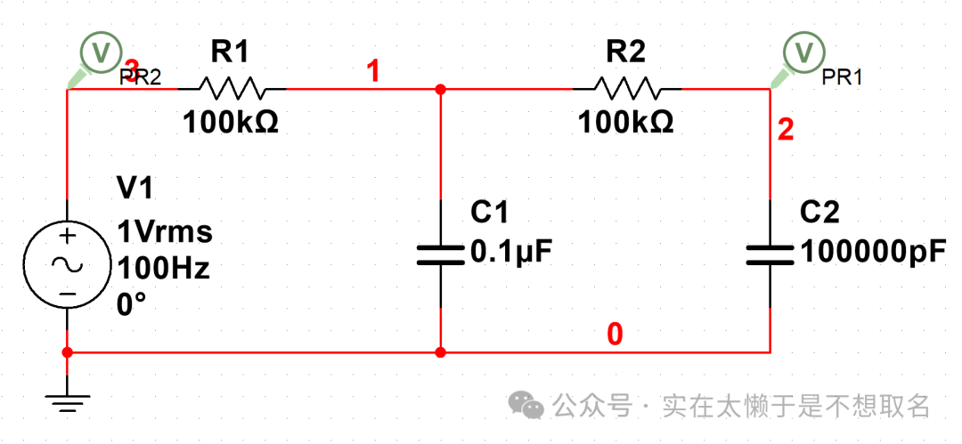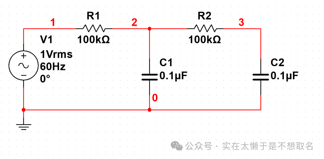 我们以经典的二阶无源滤波器为例,电路图如下: