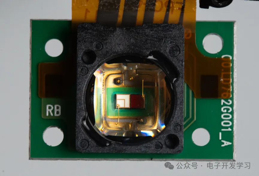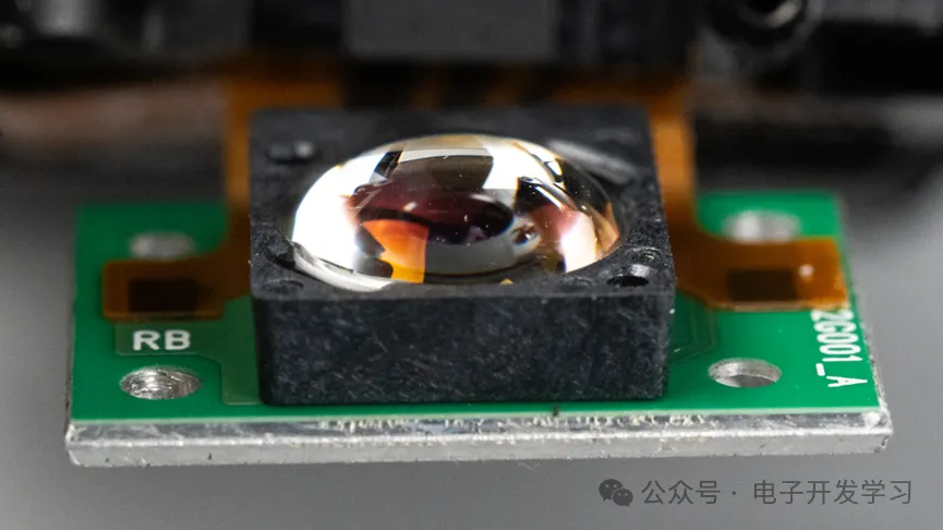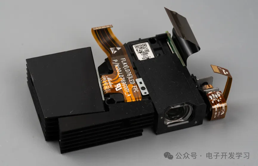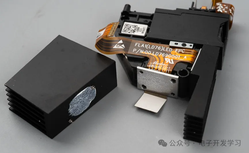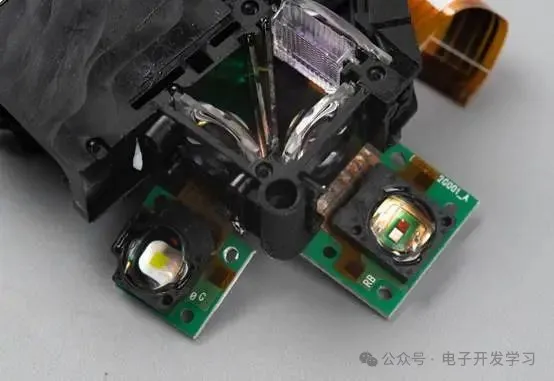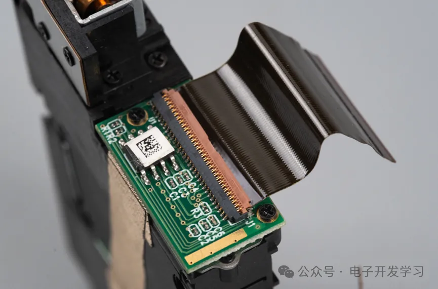 这个信号数量最多的FPC排线连接到了投影仪光学部件后端的电路板,这个板子里面必然就是DLP最复杂的地方——DMD数字微镜器件。