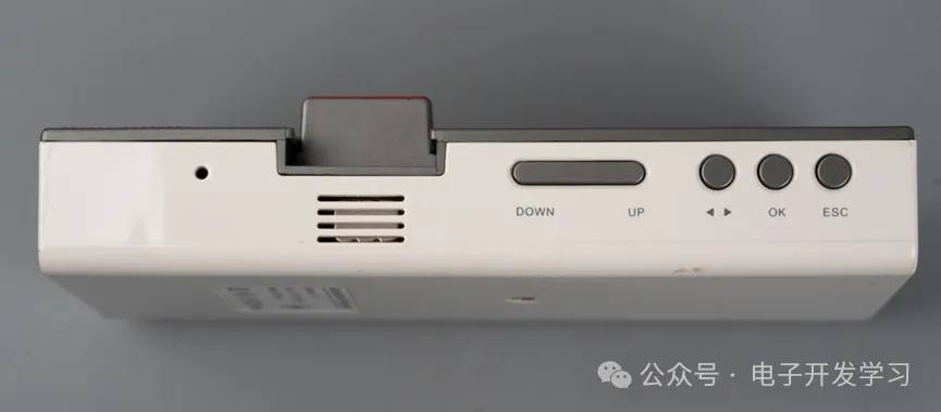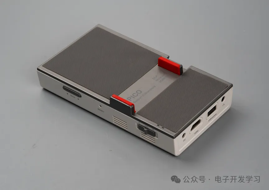 这是一款投影仪。上面有一个手机夹,从这一点就可以看出它的尺寸非常小巧。