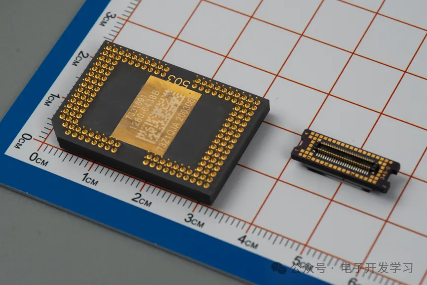 和右边商用投影仪里DMD芯片的对比。果然,小的更精致啊。
