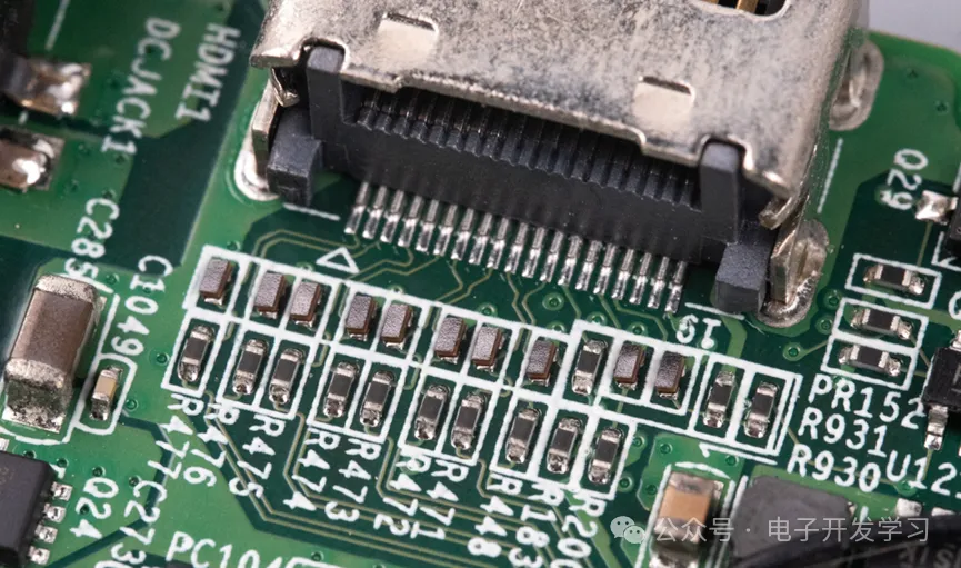 HDMI接口防护采用了一些DFN1006的ESD二极管,这种二极管焊上去之后都是被顶得歪歪扭扭的,我一直认为可以通过优化焊盘来解决这个问题,但是我至今没有找到合适的焊盘,让它焊上去之后能端端正正做防护。所以换成4通道的ESD器件最舒服。