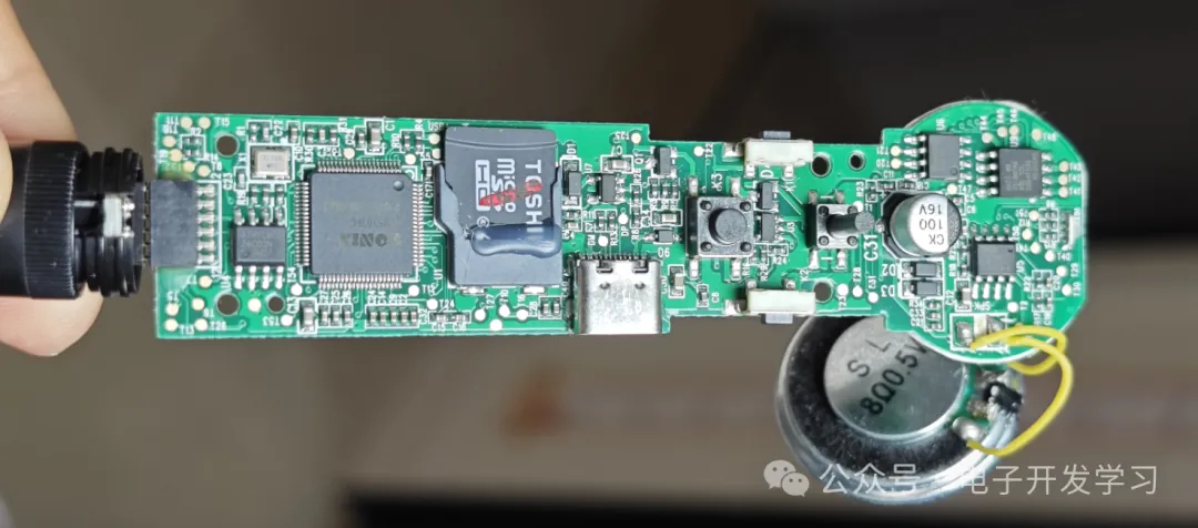有松翰、凌阳、KB、格莱、美哲、硕呈等点读笔方案商,比如松翰做芯片,也提供完整的方案,我这次拆的这个宝贝jojo点读笔就是松翰的方案,所以我们可以看到上面除了主控还有一颗音频功放也是松翰的。