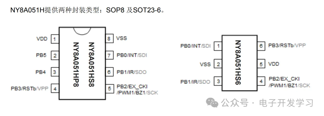 板子的另一端还有一个SOP-8封装的MCU,型号是NY8A051H,这是九齐科技的一款8位 EPROM-Based 6 I/O单片机。1Kx14 bit EPROM、48bytes SRAM。这个MCU应用比较多的场景是遥控器、风扇、灯光控制、游戏机周边等等。这个MCU内部有可选择频率的红外载波发射口,这也是它可以作为遥控器的关键特征。这款MCU还有SOT23-6的封装,适合做一些简单的小玩意。